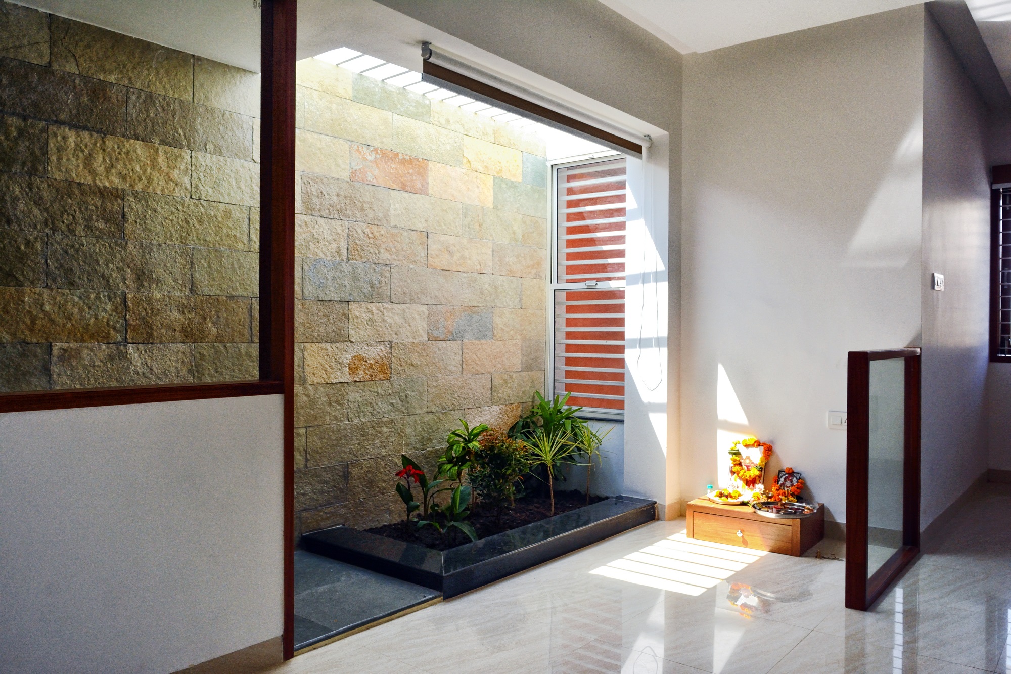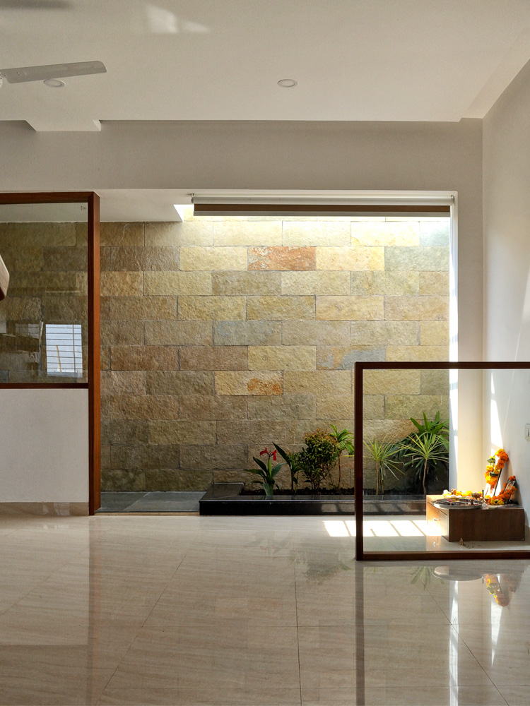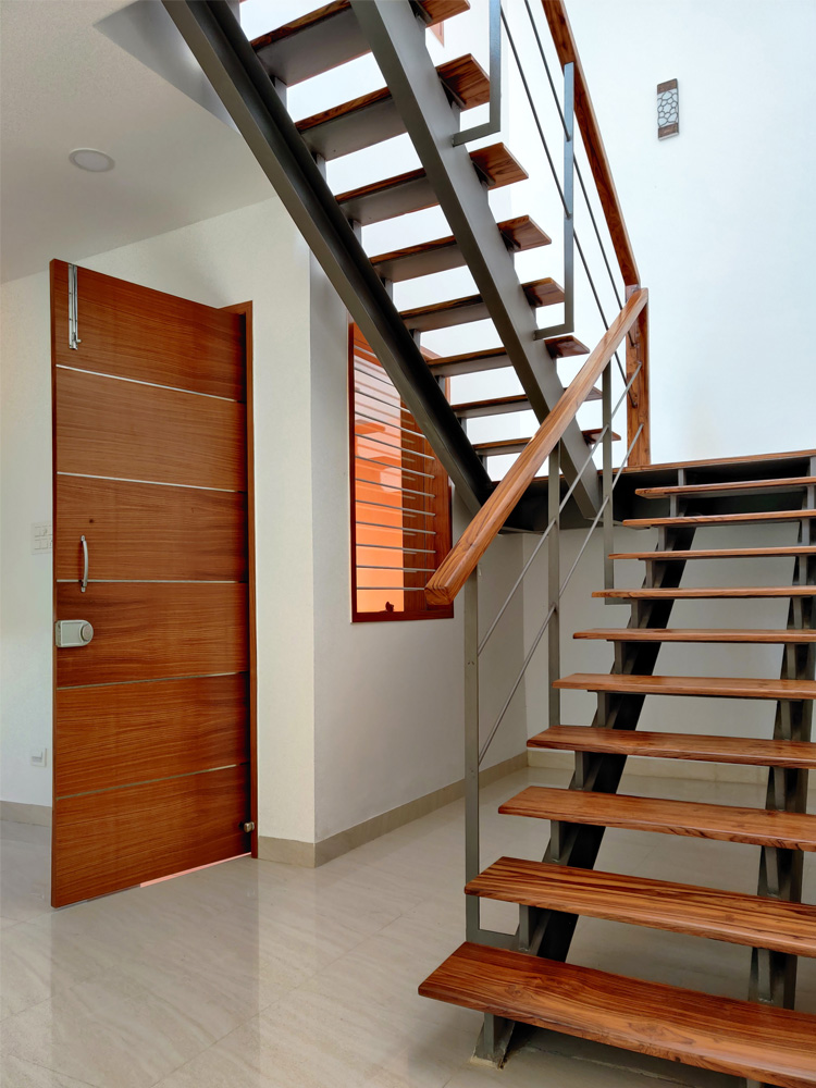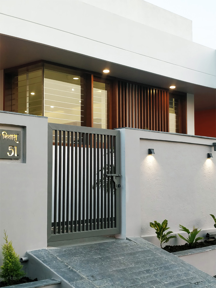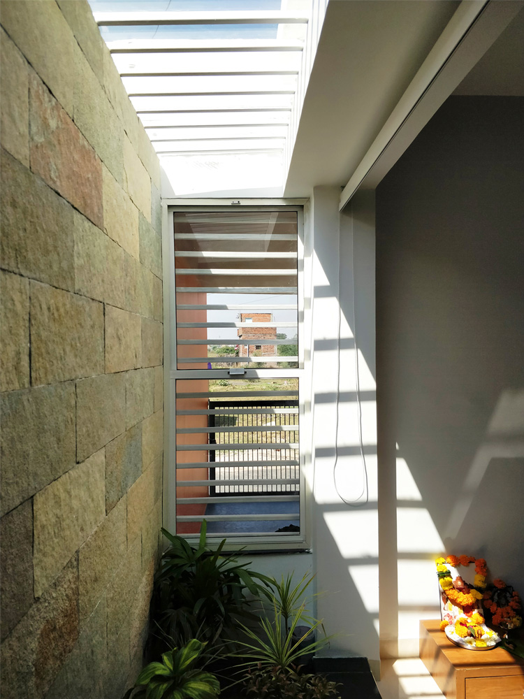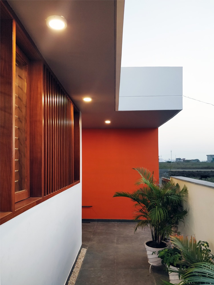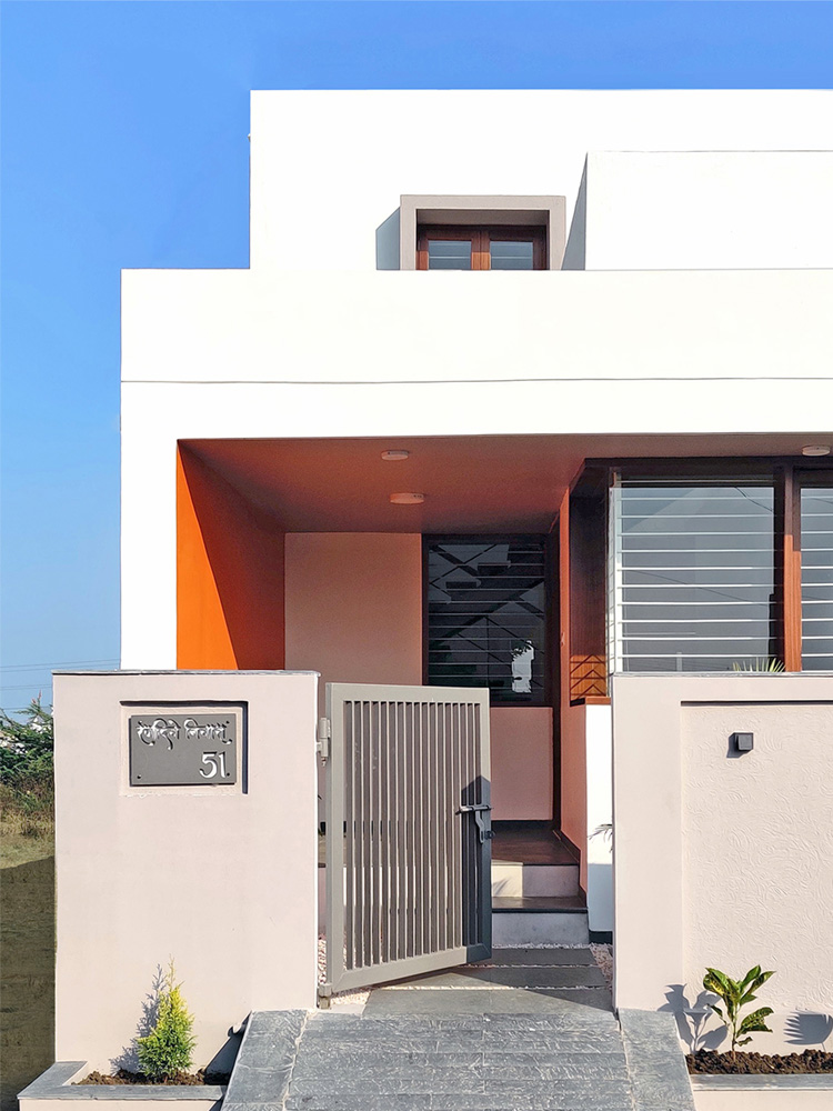 The house is located in Kharbi, a developing locality in the orange city of Nagpur, Maharashtra. The clients had a very basic brief of two bedroom hall kitchen for a family of four. The house is built across a plot of 1650 sqft. having a dimension of 30‘ x 55‘ and in a total budget of Rs 25 lakhs.