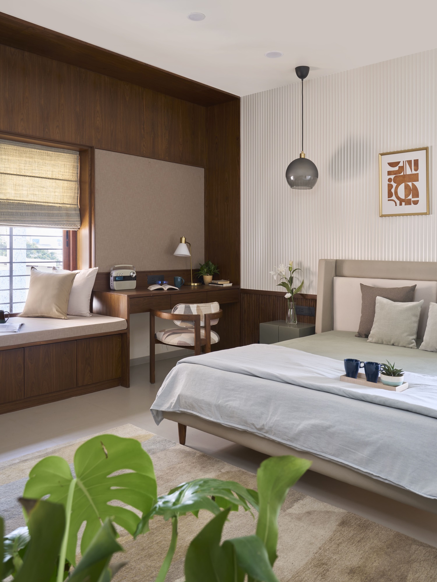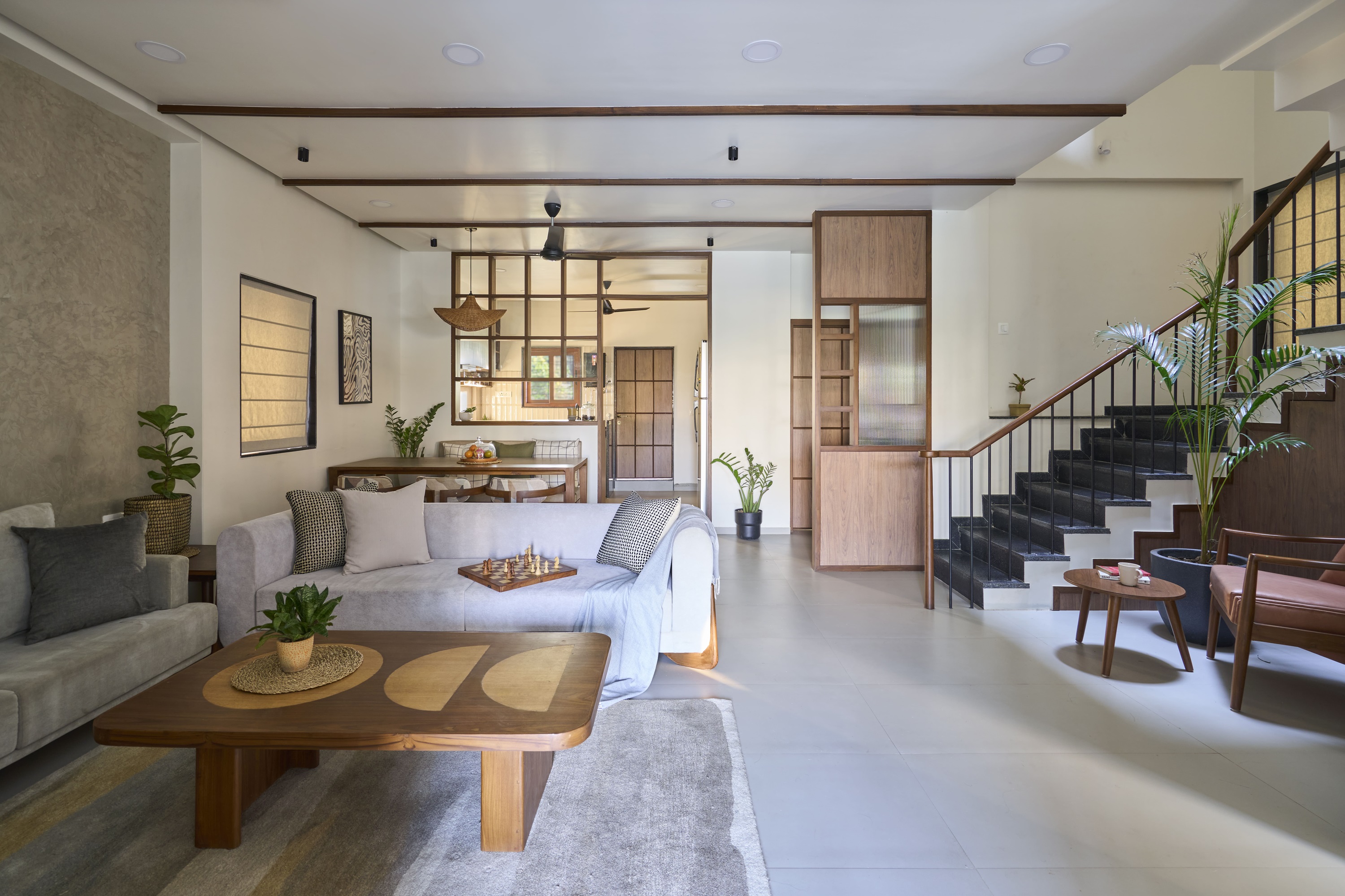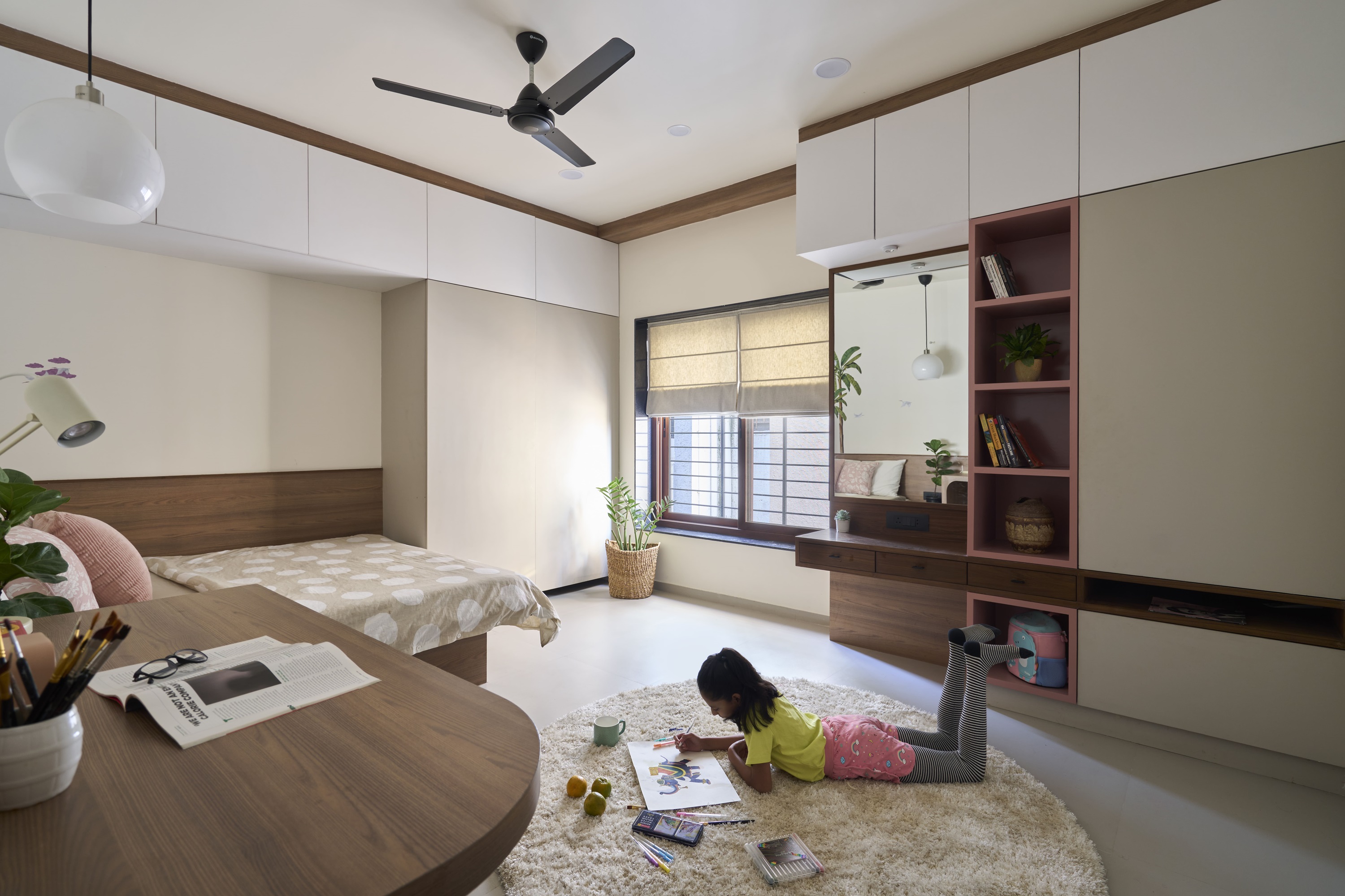 Wagh Residence is an Interior Project of a 4BHK Bungalow situated in the Urban fabric of Nagpur city. The theme of the Interior seen in furnitures and partitions are a modern blend of Teakwood, Glass and Pastel colours accompanied with white walls.