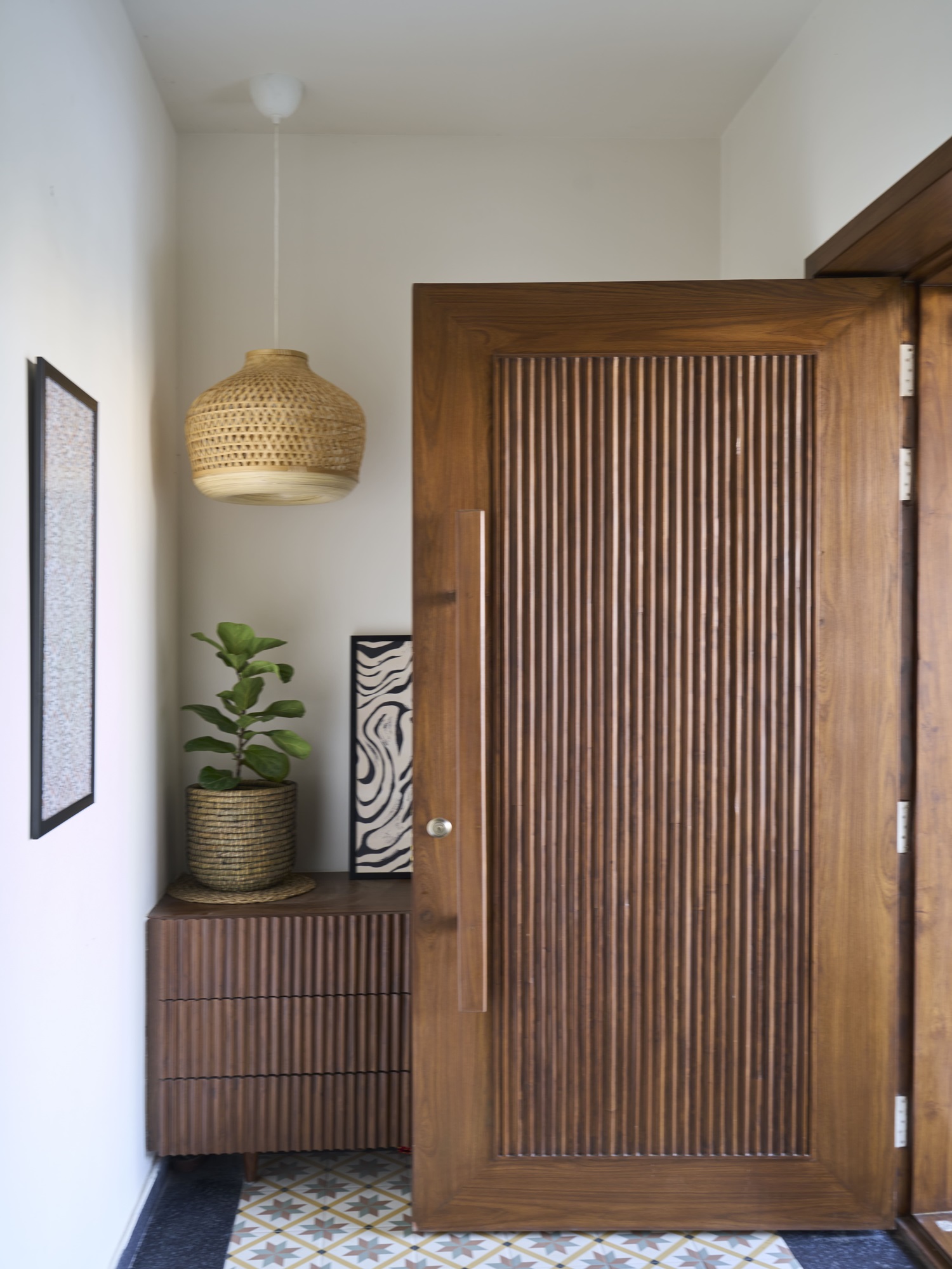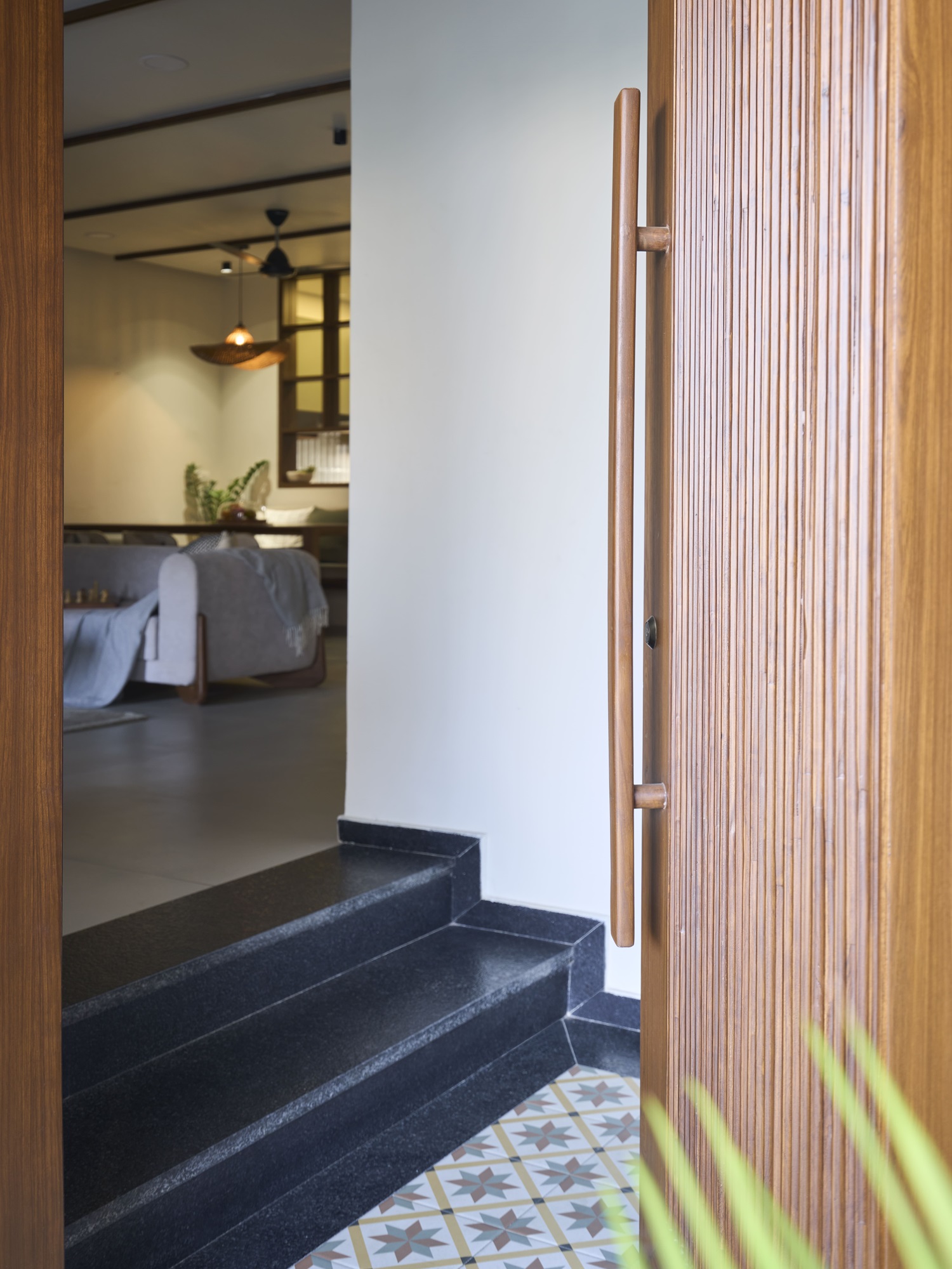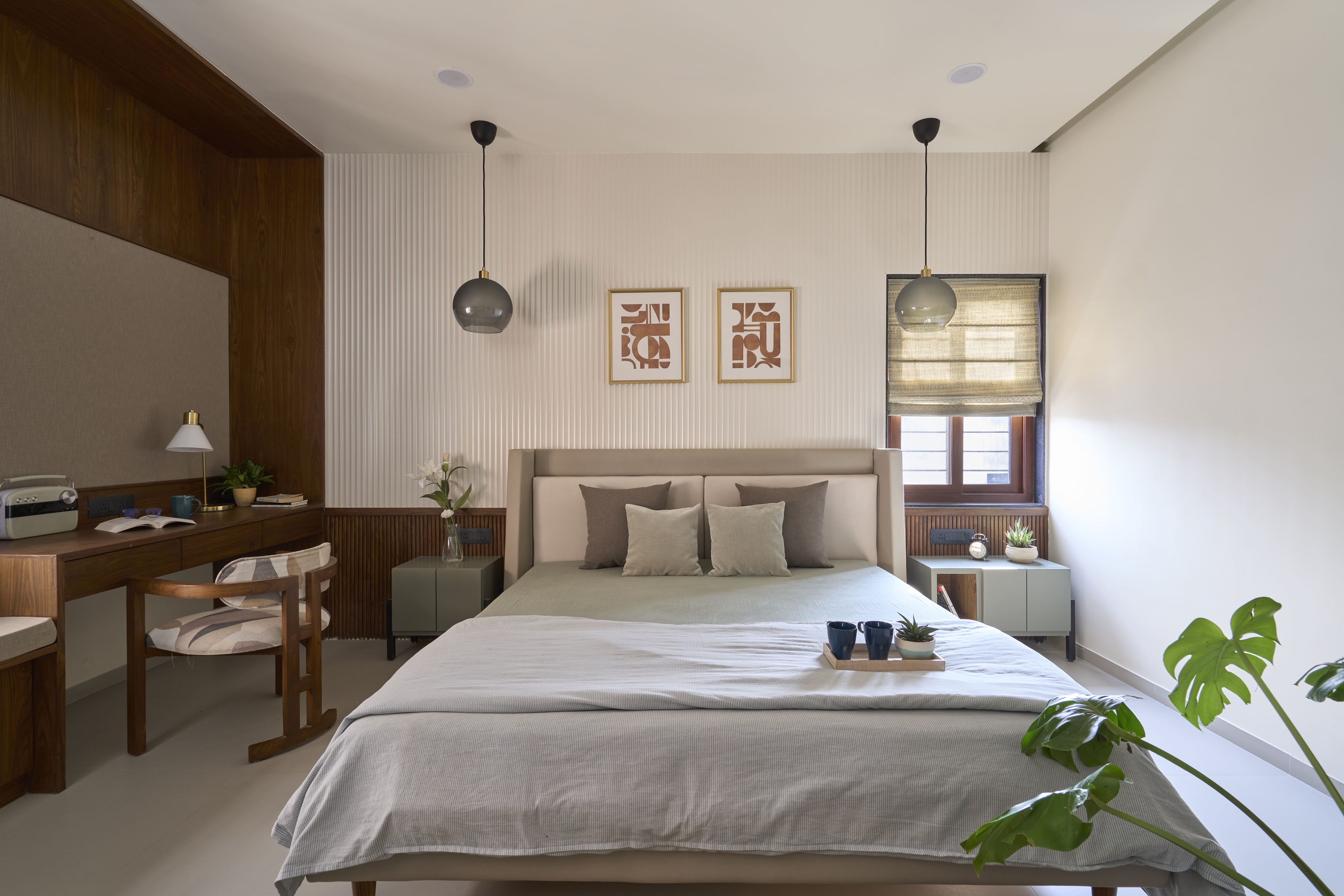 Wagh Residence is an Interior Project of a 4BHK Bungalow situated in the Urban fabric of Nagpur city. The theme of the Interior seen in furnitures and partitions are a modern blend of Teakwood, Glass and Pastel colours accompanied with white walls.